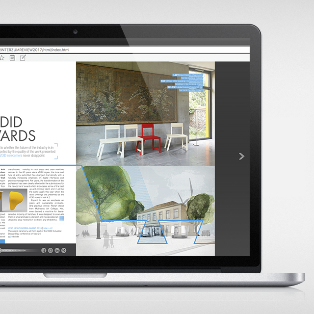 Koelnmesse, organisers of interzum – the leading furniture manufacturing and interior design exhibition – require high-quality digital interzum World review and preview publications to be hosted online with email links sent to their database of visitors and exhibitors. The magazines are produced to engage with visitors to build interest in, and attendance at, the event. After the fair, the interzum World Review is a vital source of insight into the event.